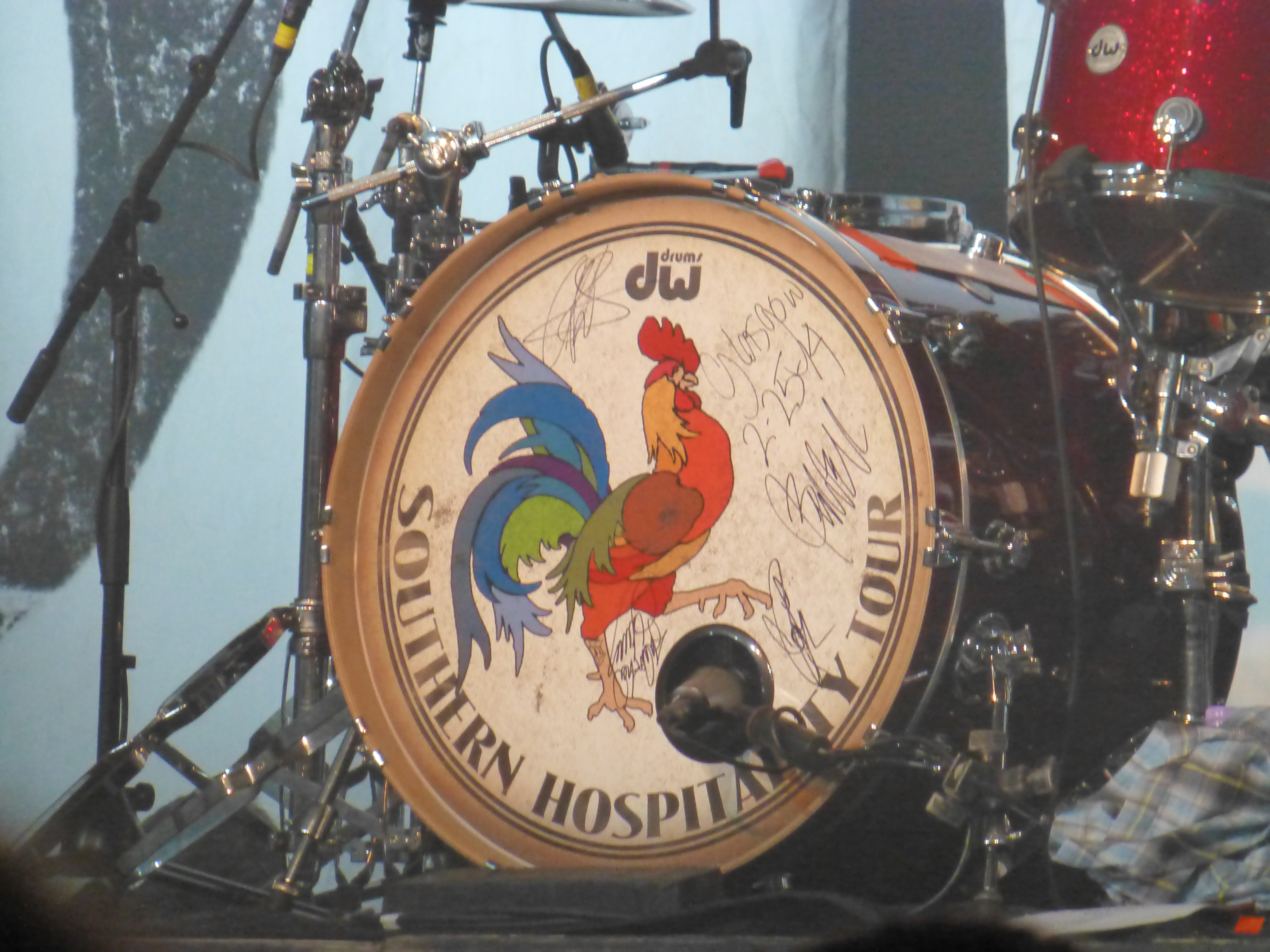 The set list had been chosen by the fans via the band’s Facebook page and was interspersed with several short Q&A sessions. Broad Glasgow accents versus Kentucky Southern drawl proved to be a challenge as the band confessed they weren’t quite tuned in to “Scottish” as they put it but the questions proved to be entertaining and the band demonstrated what a decent bunch of guys they are. One girl asked if they would autograph a t-shirt she had worn to their last Scottish show when she had been pregnant with her first child. The shirt was duly tossed on stage, autographed then personally delivered back to its owner by lead singer, Chris Robertson, who came off stage and into the crowd. A custom made bass drum skin was autographed and raffled off during the evening. The fans did learn one “personal” fact about guitarist, Ben Wells – the name of the shampoo he uses on his long blonde flowing locks. Street cred severely dented there, young man!