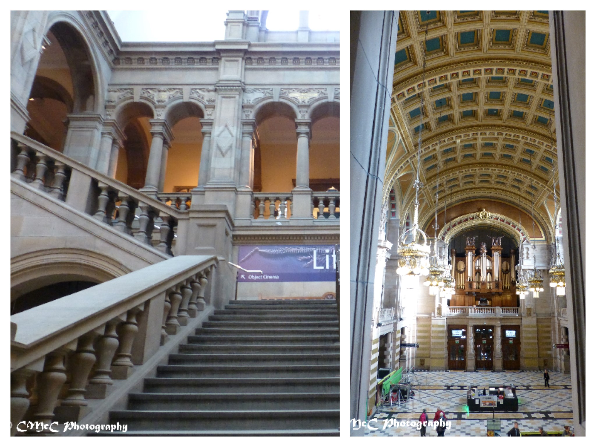 It was built in the late 1800’s (same era as the dress exhibition covers) from the proceeds of the 1888 International Exhibition that was held in Kelvingrove Park. It first opened its doors to the public in 1901. The sprawling red sandstone building is built in a Spanish baroque style (looks Gothic to my un-educated eye) with its main entrance facing out across Kelvingrove Park. (No, it wasn’t built back to front as per the urban myth.)