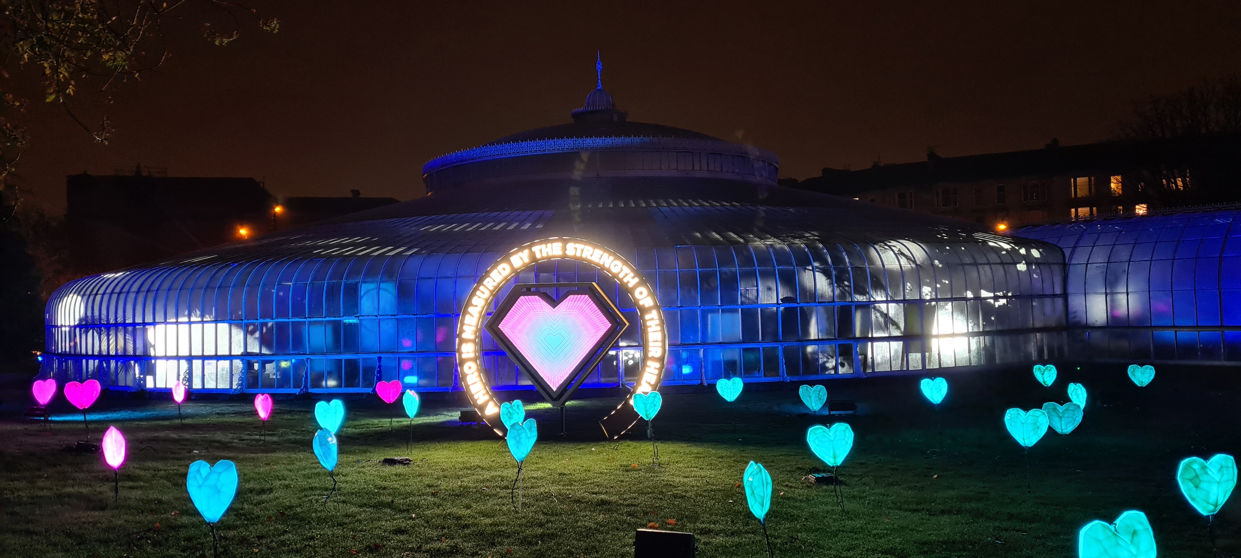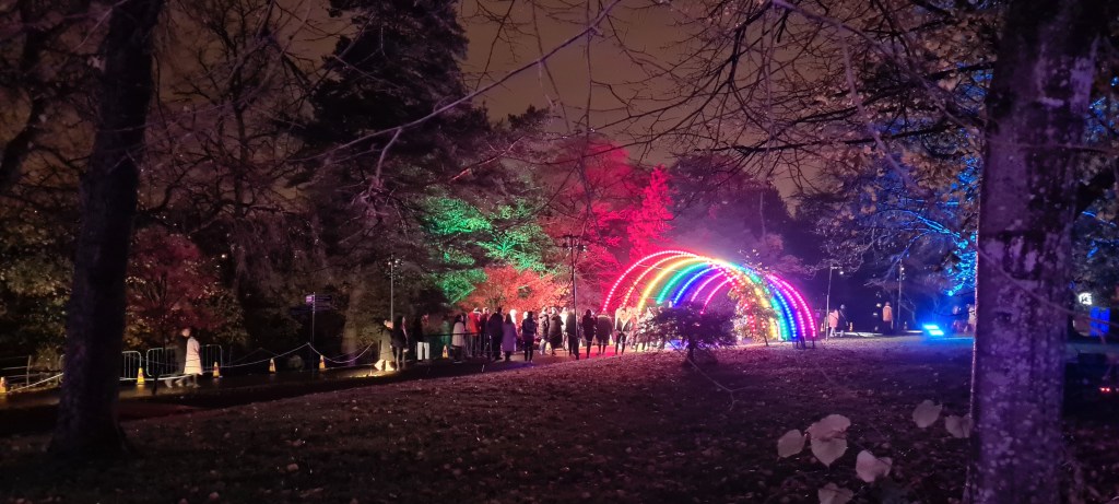 So what was the attraction that was lurking in the dark waiting to be explored? It was GlasGLOW, the annual Hallowe’en Light Show spectacular at the city’s Botanic Gardens.