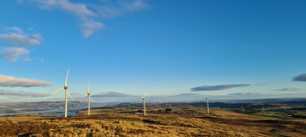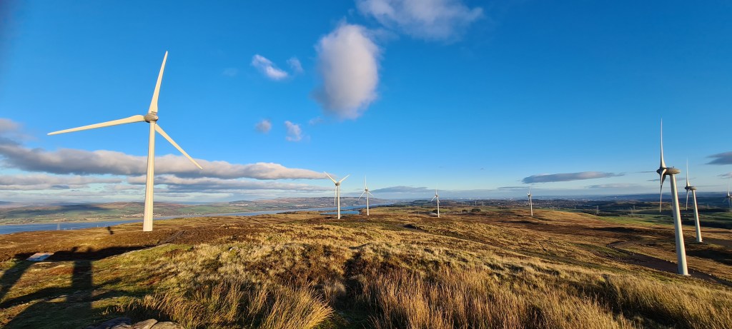 There’s something soothing about the gentle swooshing noise these turbines make. OK, one was whinging and whining a bit. (Must be the teenage girl one! LOL) It was surprisingly calming walking the circular route round the wind farm. There’s eight of these gentle giants and they stand some 110m high. The view from the top of one must be stunning as the views from ground level are breathtaking.