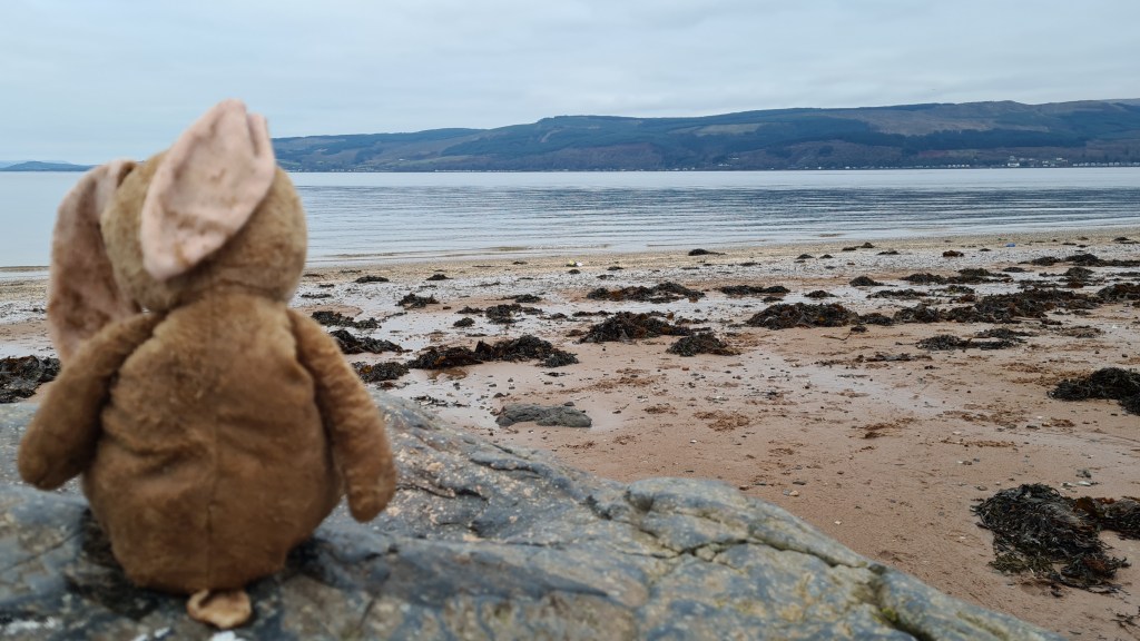 I sat him up, brushed off the worst of the wet sand and positioned him facing the river. As I took a few photos of him, I paused to think about who he belonged to. Had some small child lost their bedtime friend? Had tears been shed because he’d been lost on day out at the beach? Would anyone take the time to look for him?