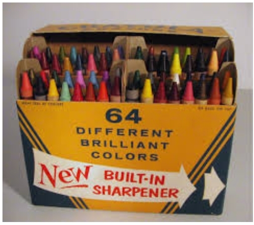 I remember saving up to buy this box of crayons when I was about 10 years old. I eventually bought my box, complete with sharpener, at the ACME on holiday in America in 1980. No idea what I paid for it but $5 rings a vague bell (it was a long time ago even for my crazy memory).