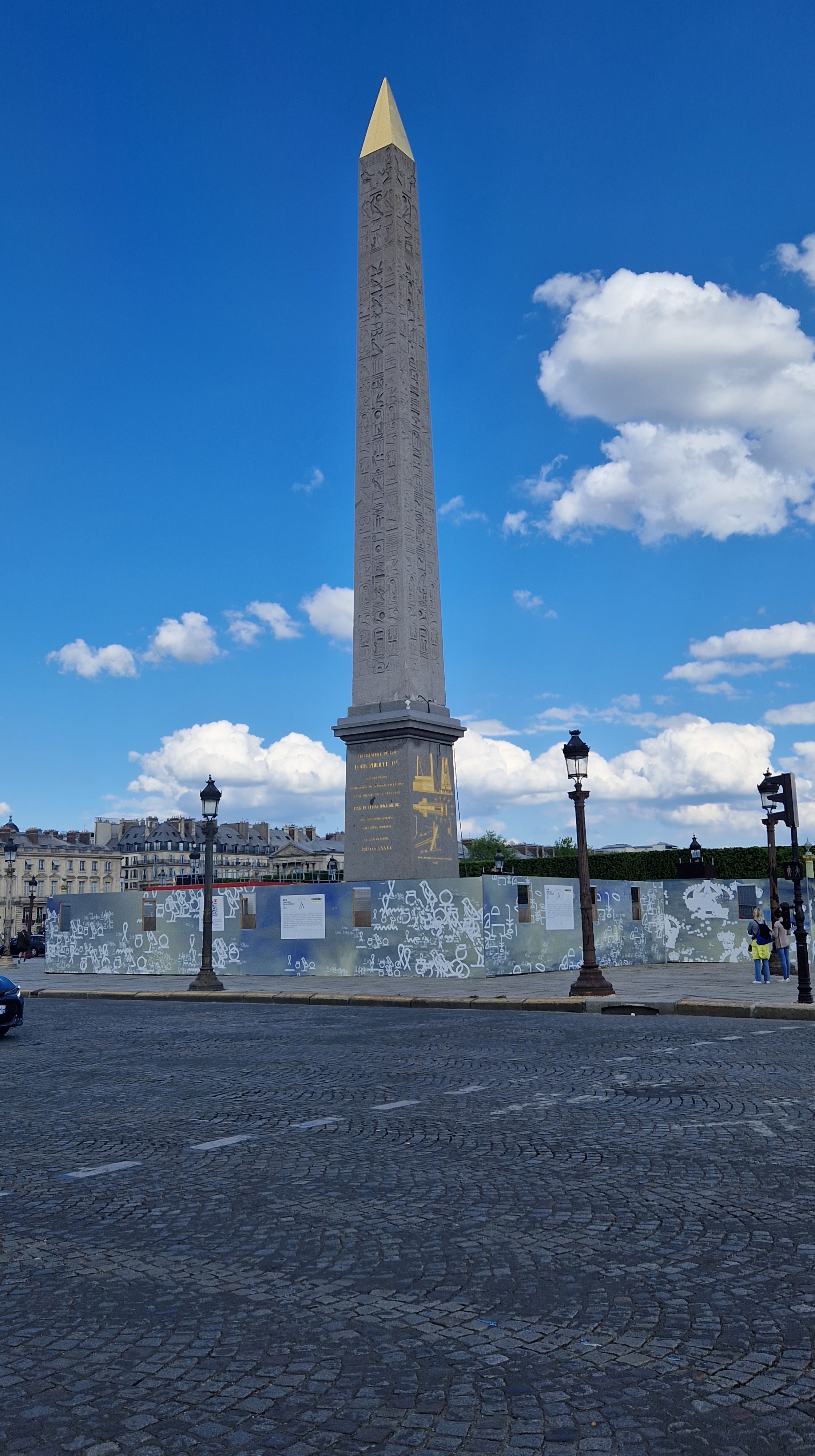 It only took us a few minutes, after an initial wrong turn, to reach Place de la Concorde, which was to be one of our main landmarks for the duration of our stay. There’s a huge gold topped Egyptian obelisk in the centre of Place de la Concorde that sits on the former site of the guillotine!