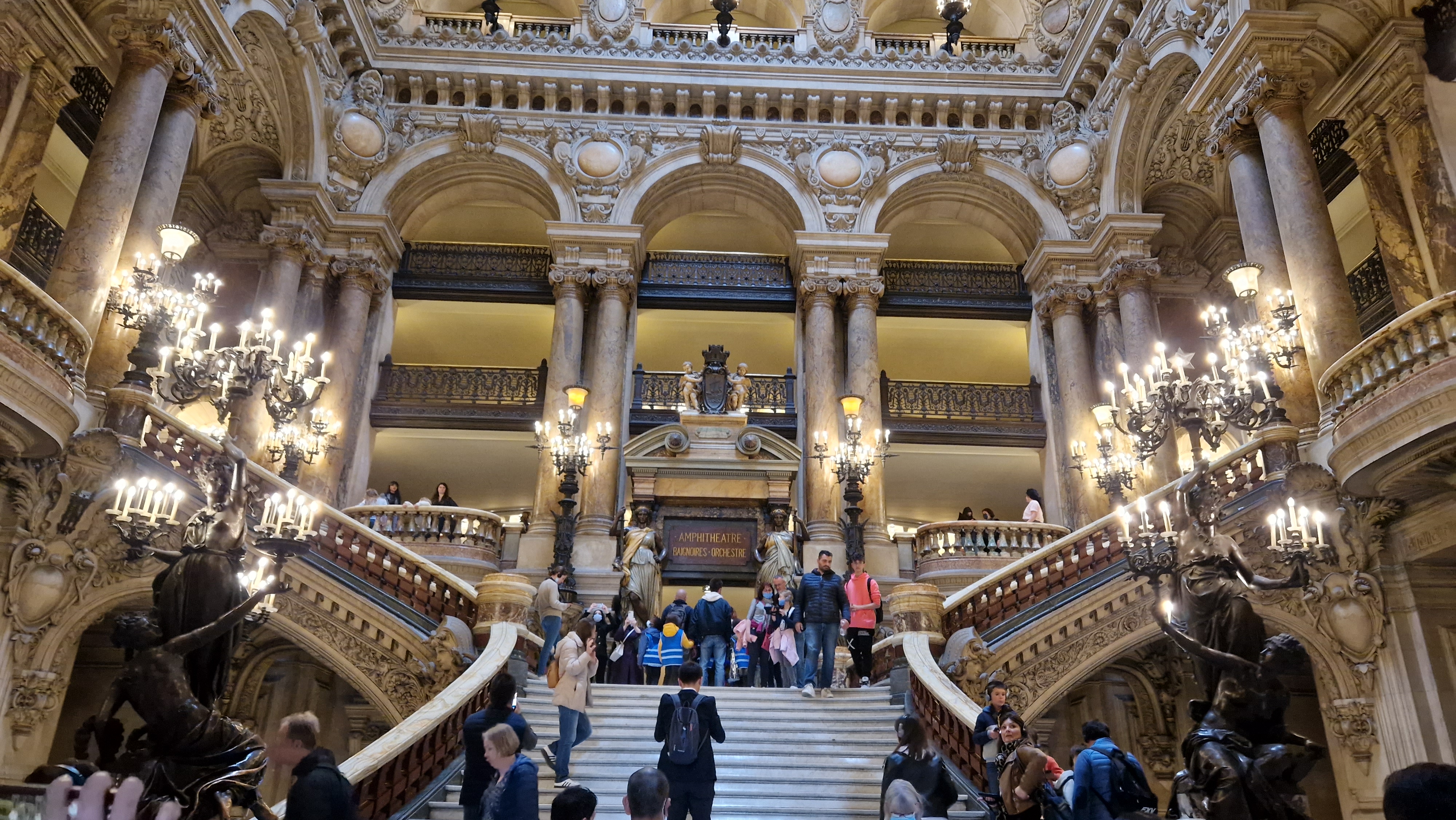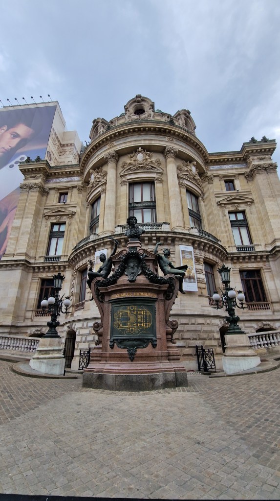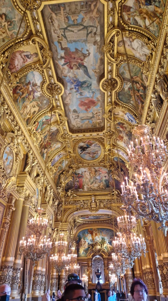 Tuesday was our first full day of sight-seeing. We’d decided to visit one or two things/places a day to allow sufficient time to fully appreciate them. At least that was the plan. The Palais Garnier, the opera house across the street from the hotel, was our first stop. I’d booked a guided tour for us, and it was well-worth it to learn the history of this stunning theatre. (I’ll most likely write more about this in a future blog – you have been warned.) The Palais Garnier is stunning inside and steeped in history. It was also the opera house that inspired the story/musical/film Phantom of the Opera. We never saw the Phantom; his seat was empty.