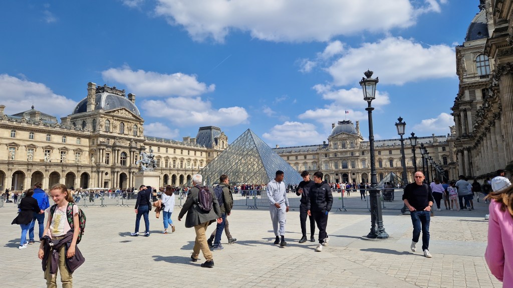 Wednesday saw us up and out early for a 10:15am rendezvous with our tour guide. Again, we headed to Place de la Concorde then through the Jardin des Tuileries to meet our tour guide at the Arc de Triumph Carousel. If you ever intend to visit the Louvre museum, our destination for the day, can I strongly recommend booking a guided tour. When we arrived, less than an hour after the museum opened for the day, the queues outside the pyramid entrance stretched for miles. Our lovely guide, Alexandra, by-passed those, allowing us to enter via one of the other underground entrances then escorted us through the crowds pointing out the key exhibits of the museum, as well as giving us a history lesson of the building itself. The Louvre is vast! We only saw a tiny portion of it. I’d have loved to stay and explore some more but the Big Green Gummi Bear was bored so we left about an hour after our tour ended.