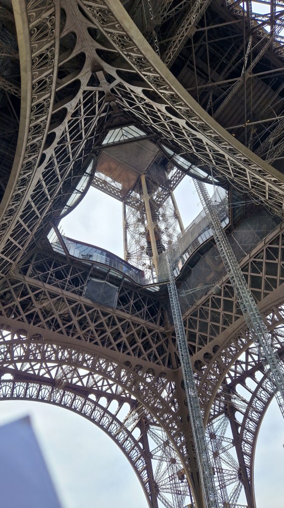 Thursday was our last full day in the city (“whew”, my wee feet cried!) We had one final tour left – a trip to the summit of the Eiffel Tower. Again, we meandered through Place de la Concorde to the left bank, through the Invalides area of the city to Parc du Champs-Mars in front of the Eiffel Tower. We met up with our guide and again our pre-booked tickets allowed us to skip the lengthy queue. Security checks are really tight here! We took the lift to the second level where our guide escorted us to each of the four sides of the tower, telling is about its history and what you could see from the view. The guided tour ended there, and we then joined the queue for another lift to take us to the summit. (Tickets to the summit are restricted in number.) Thank God it didn’t involve climbing any stairs as my calves and thighs hadn’t quite recovered from visiting Sacre-Coeur. Apart from incredible views, we found a champagne bar at the summit. Well, it would have been rude not to…when in Paris and all that…