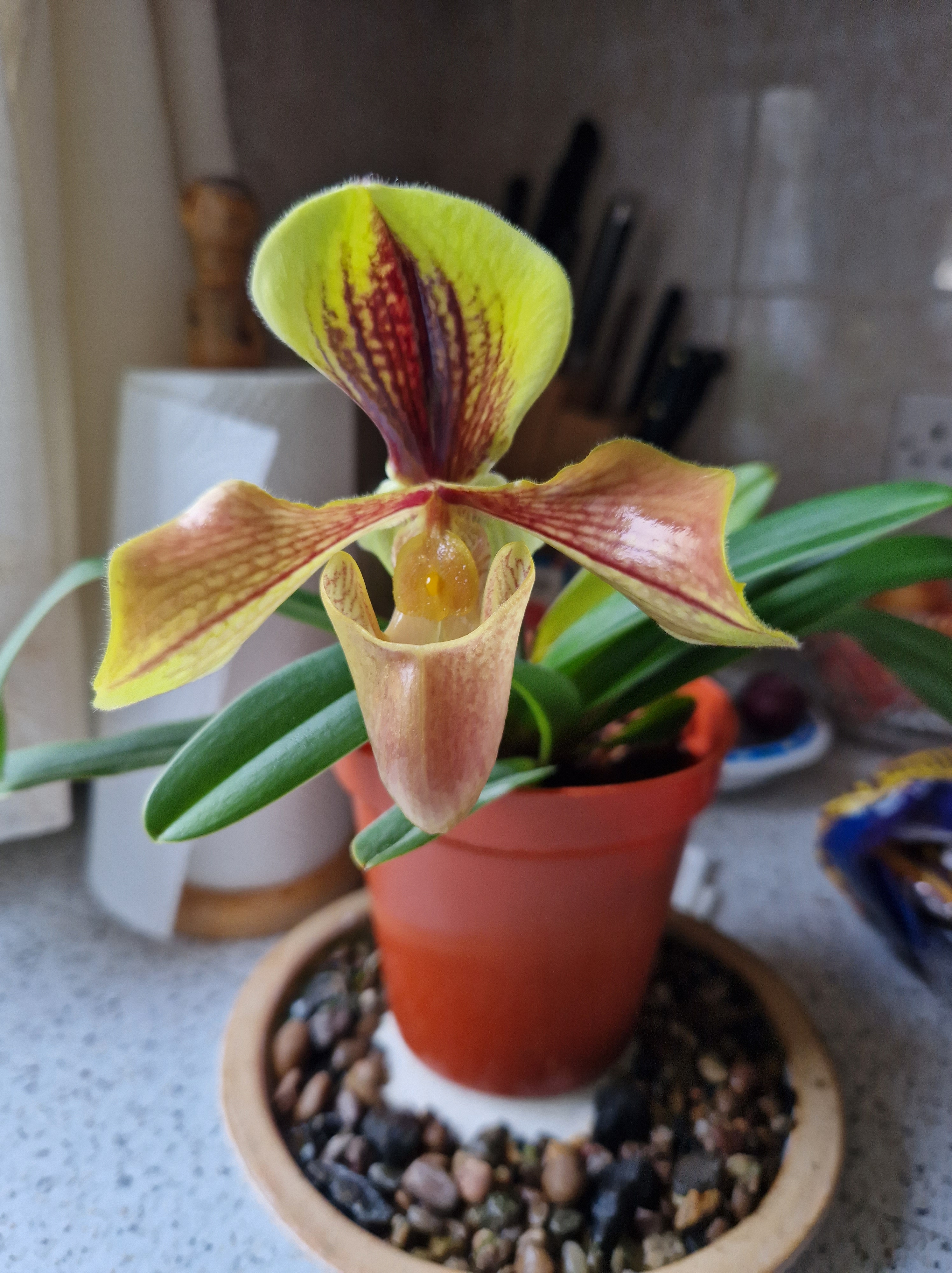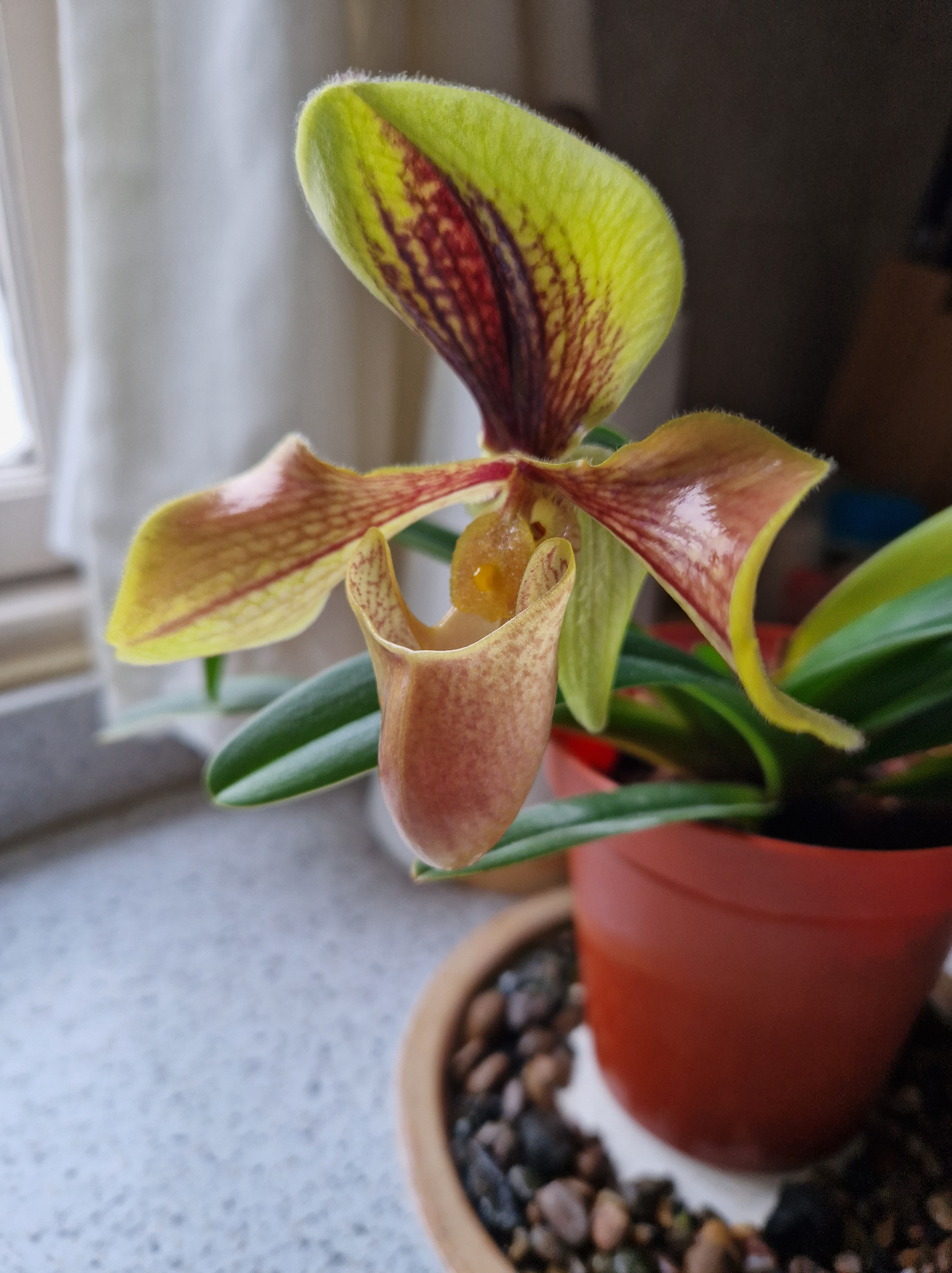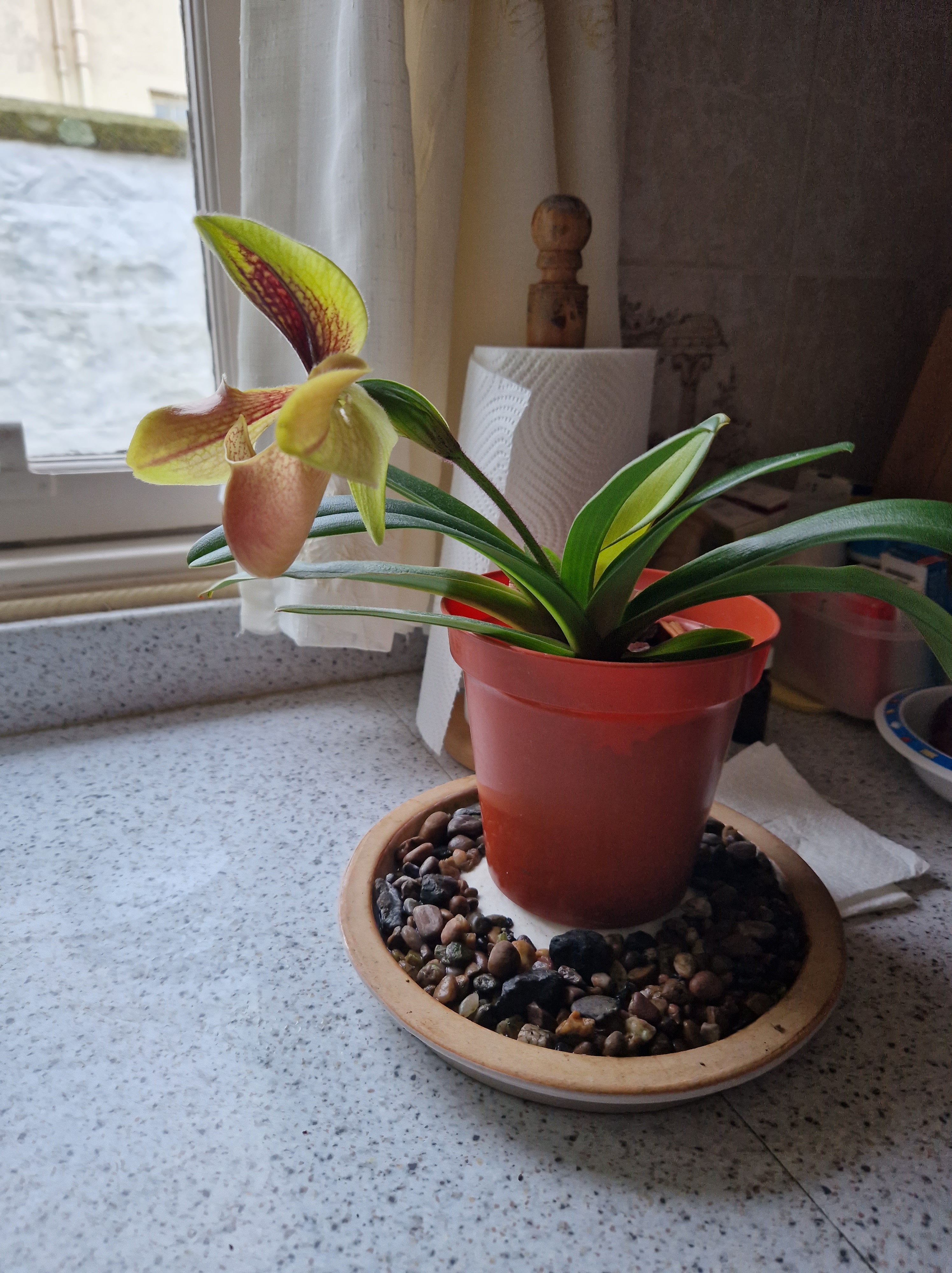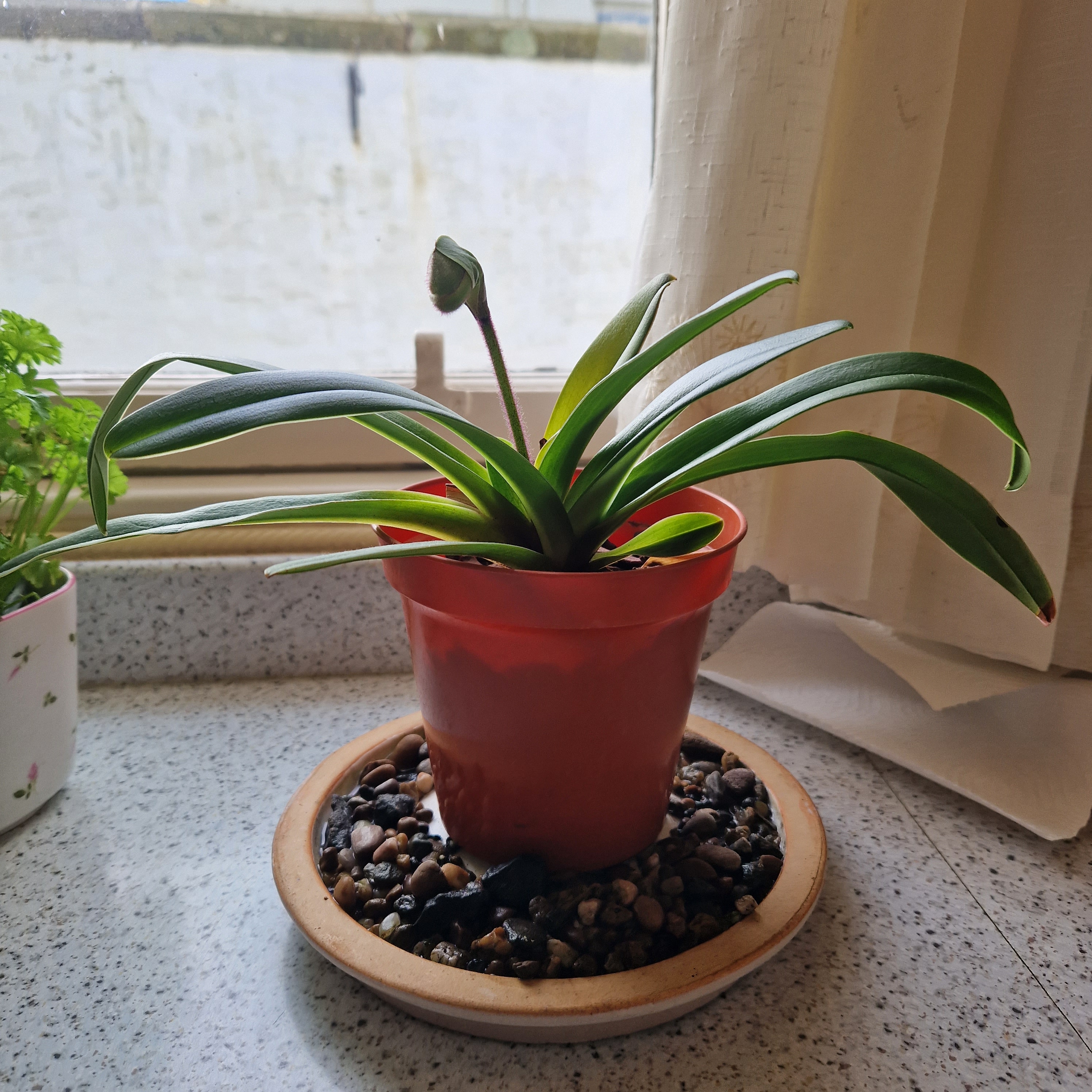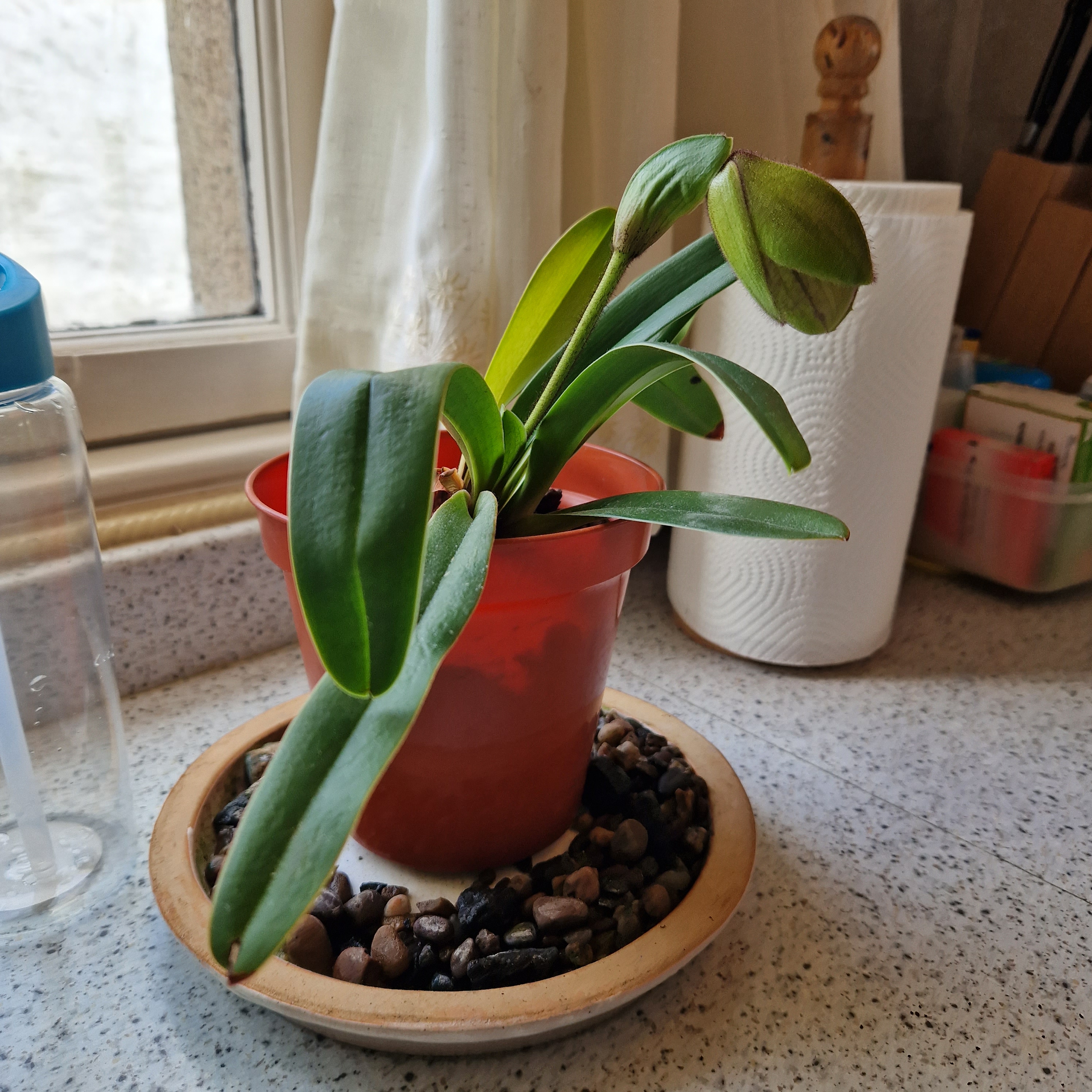 At first it looked as if it was just growing 2 new leaves then the flower bud began to swell…..