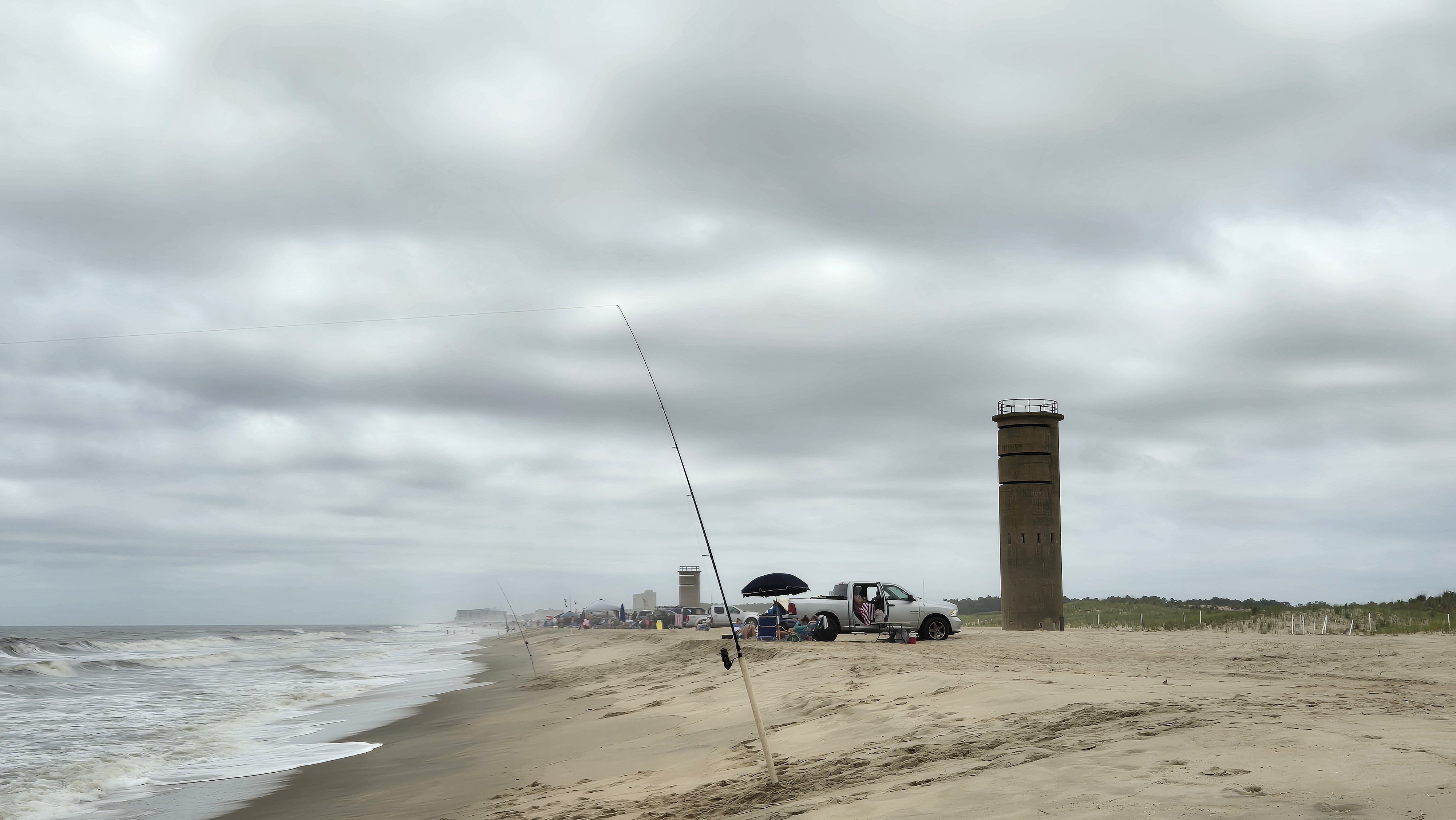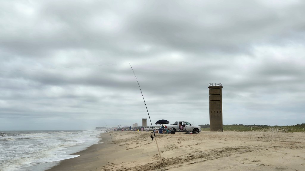 More trucks and fishing lines followed as I walked through another surf fishing spot but at least I could now see the two WW II fire towers. They were a welcome sight!