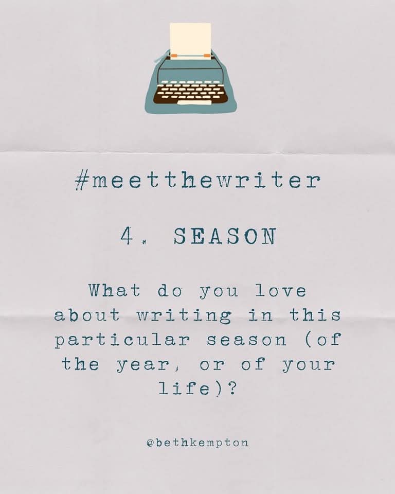 I love writing in any season but as the days grow warmer and the nights are lighter, I love being able to write outdoors.