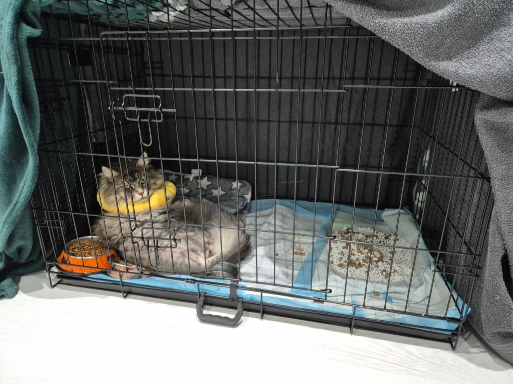 The worst is now behind him and it’s great to see him out of “kitty jail” during the day and sitting in his favourite spot again.
