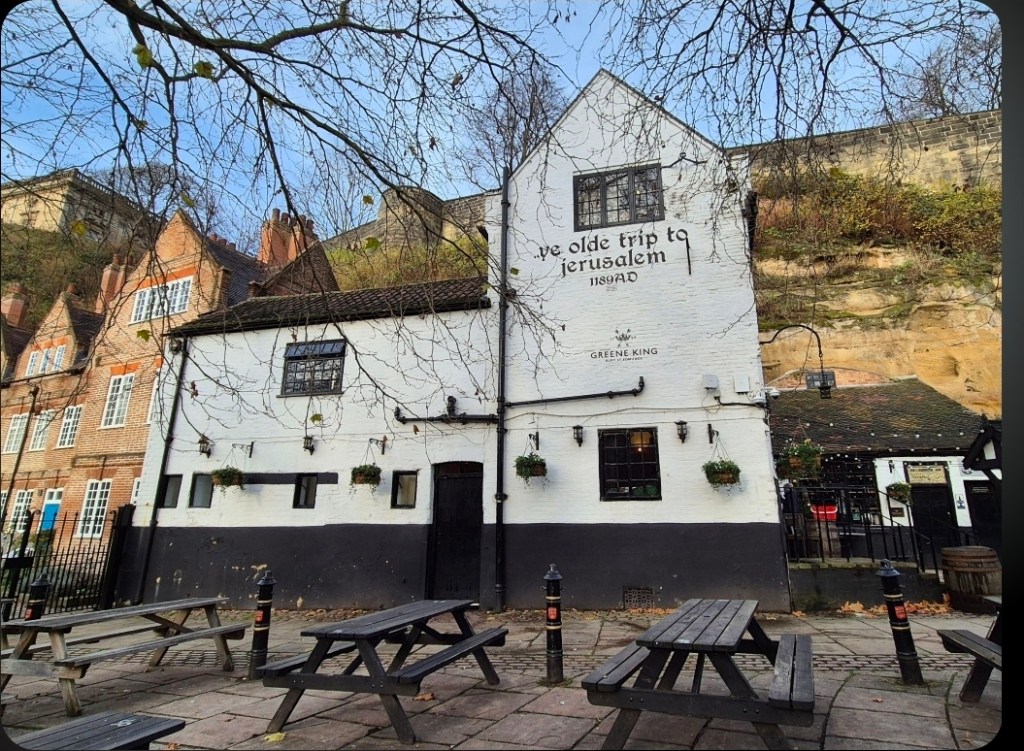 The tour exited the cave/tunnel into an open area to the south of Castle Rock known as Old Brewhouse Yard and then out into the courtyard of Ye Olde Trip To Jerusalem Inn that dates back to 1189AD.
