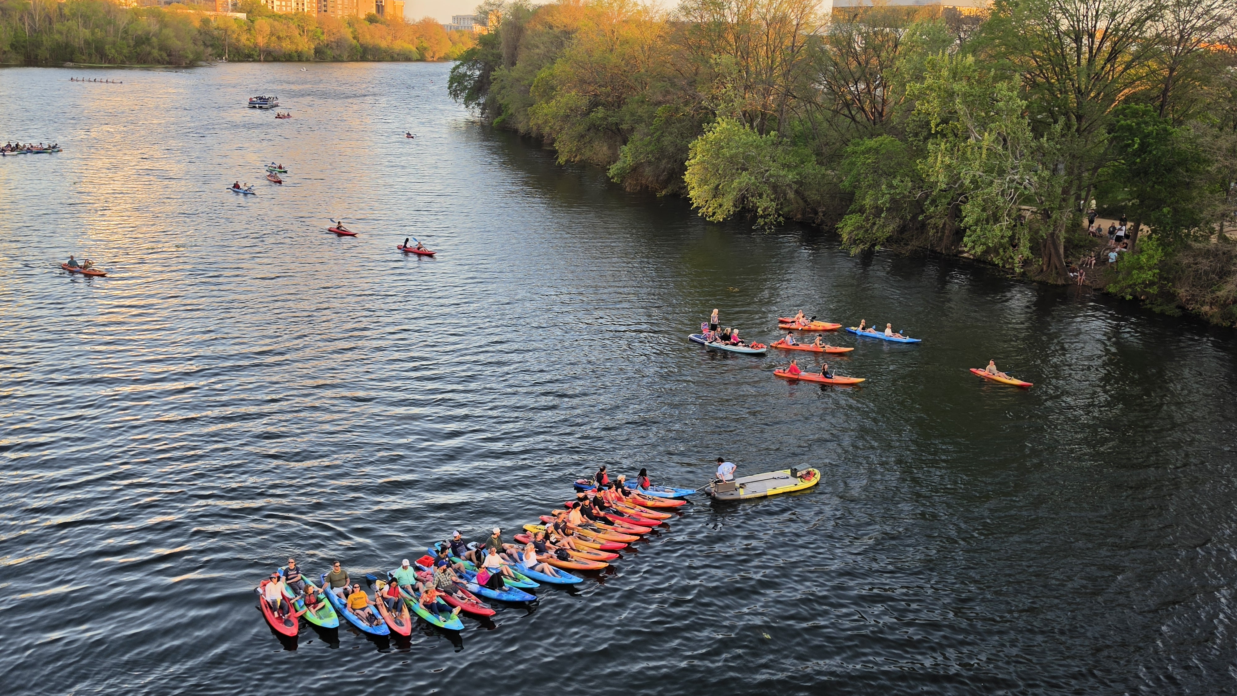 On our first night in town, Boy Child and I headed to the bridge as the sun was setting to secure our rail spot for the night. Definitely not my usual preferred kind of rail spot! With my stomach in knots, I stood leaning on the rail watching the kayakers and tourist boats gather below on Lady Bird lake and the crowds gather on either bank and around me. My heart was pounding as I waited.