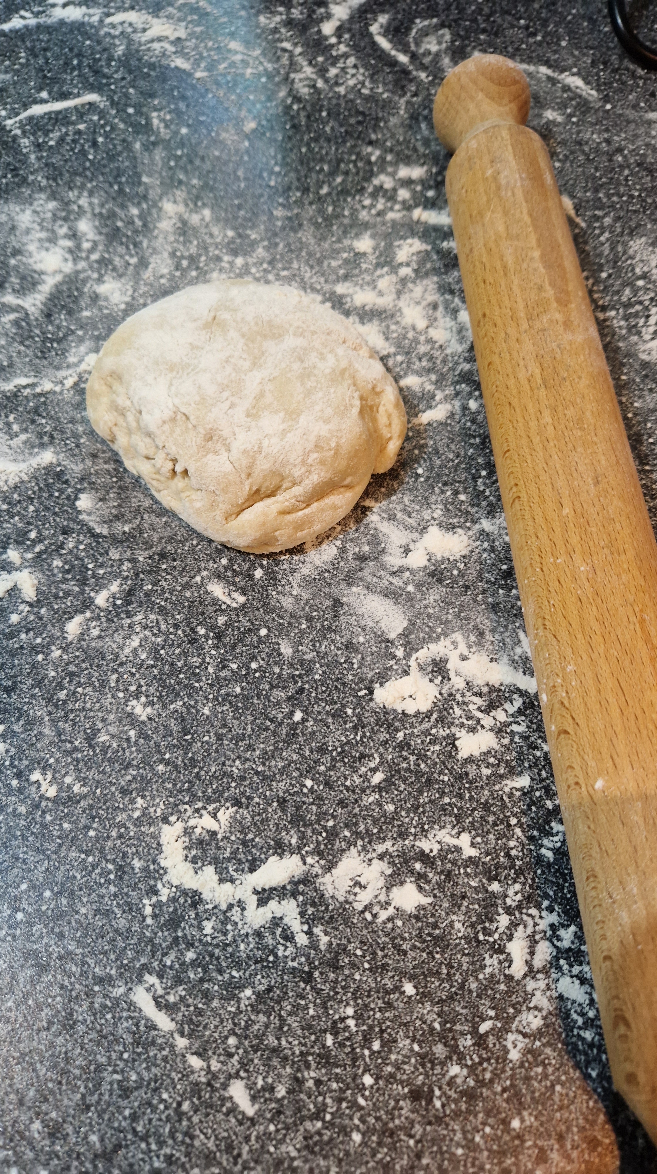 Making the dough was the easy bit…if a bit sticky and messy at first.