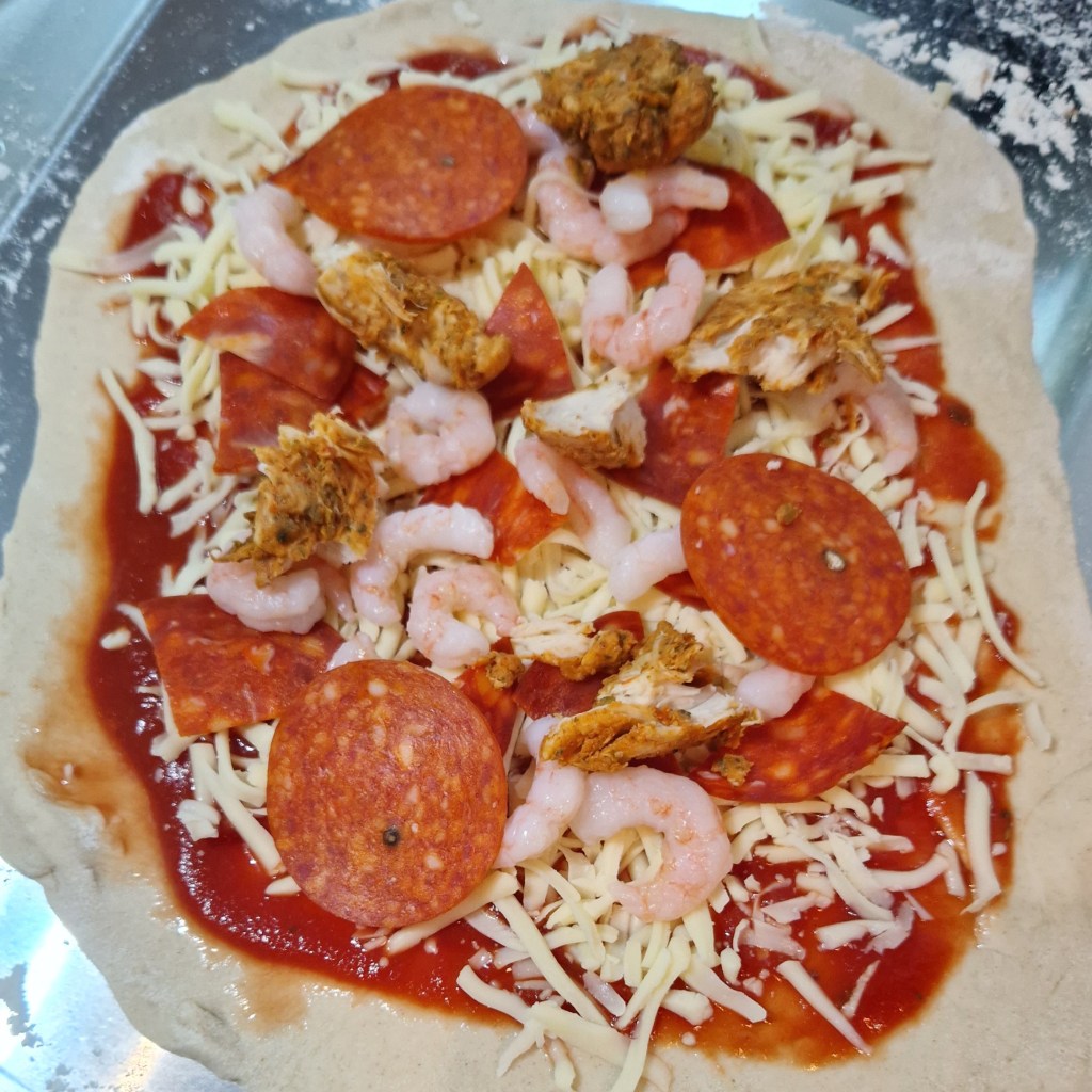With the oven up to temperature, it was time to add the toppings and get them in the oven.